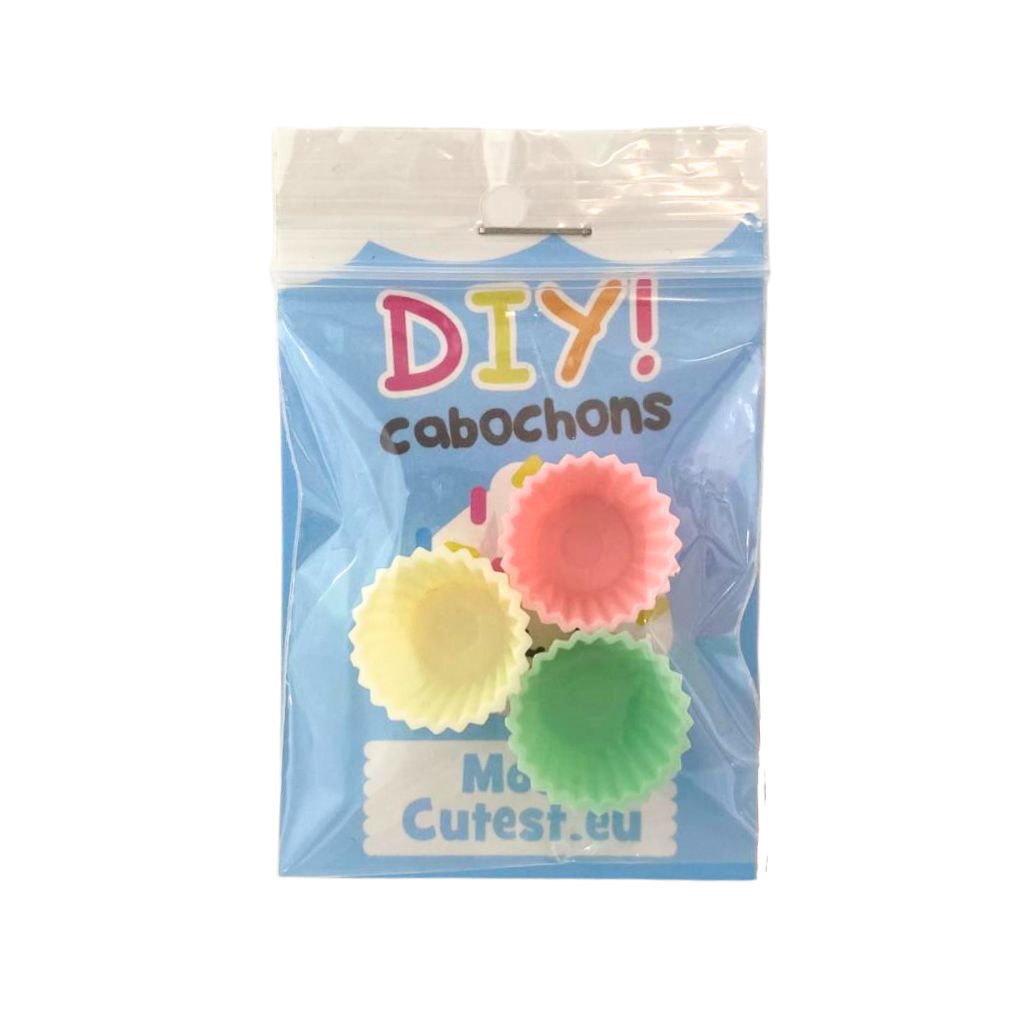 Deze kawaii cabochons set bevat 3 kawaii cabochons in een vorm van een cupcake cup in de kleur: geel, roze en groen.