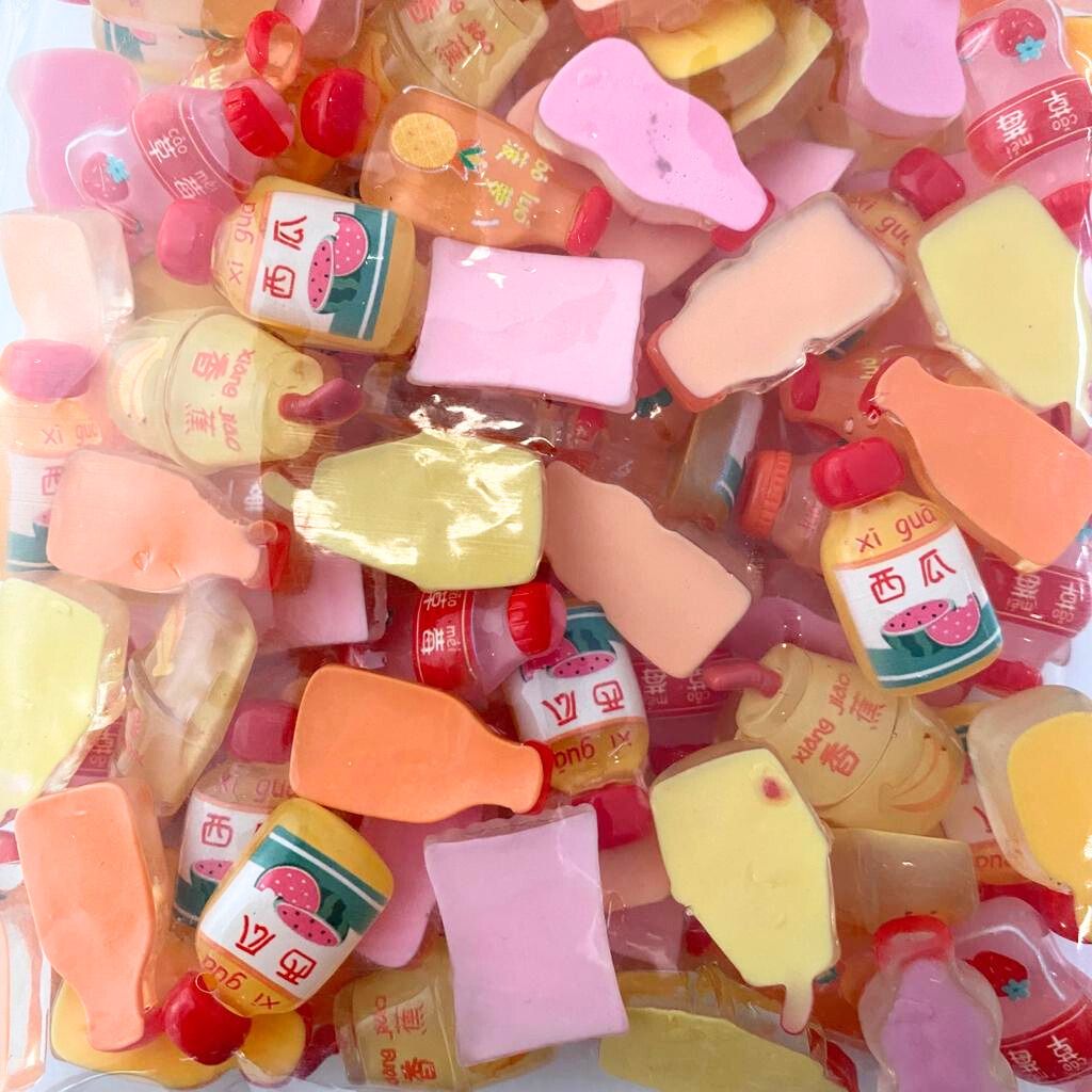 Deze kawaii cabochons verrassings-set bevat 5 kawaii cabochons in een vorm van een flesje of zakje!